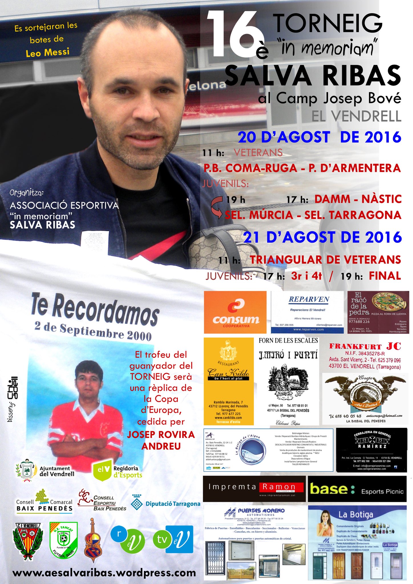 Un dels participants a la Taula Rodona, en Daniel Crespo, és un reconegut col•leccionista, però a més és un puntal del Memorial Salva Ribas, un quadrangular dedicat a recordar al jove jugador Salvador Ribas Miró qui va morir en accident de cotxe l'any 2000. Salvador Ribas havia nascut a la Bisbal i havia estat jugador al Vendrell a l'Espanyol i a la Damm. Aquest memorial ha comptat al llarg dels anys -enguany serà la 17a edició- amb el suport de jugadors com Neymar, Messi, Iniesta, Piqué o Carles Puyol. (De fet Messi va jugar en aquest Torneig l'any 2002). Cal dir que el FC Barcelona ha donat força suport a aquest Memorial al llarg dels anys, com es pot veure en aquesta fotografia de l'any 2015 on van lliurar una samarreta signada per tots els jugadors i unes botes signades per Leo Messi per ser sortejades en benefici del Memorial. El Memorial ofereix a quatre equips de categoria juvenil una oportunitat de deixar palès no només l'estima pel futbol, sinó la part humana que comporta mantenir viu el record de Salva Ribas. Actualment aquest Memorial és reconegut com un referent. Aquest any els partits tindran lloc al Tancat durant dos dies del mes d'agost i està prevista la participació dels equips Nàstic, el Vendrell, Vilafranca i Damm , tots ells de futbol juvenil.